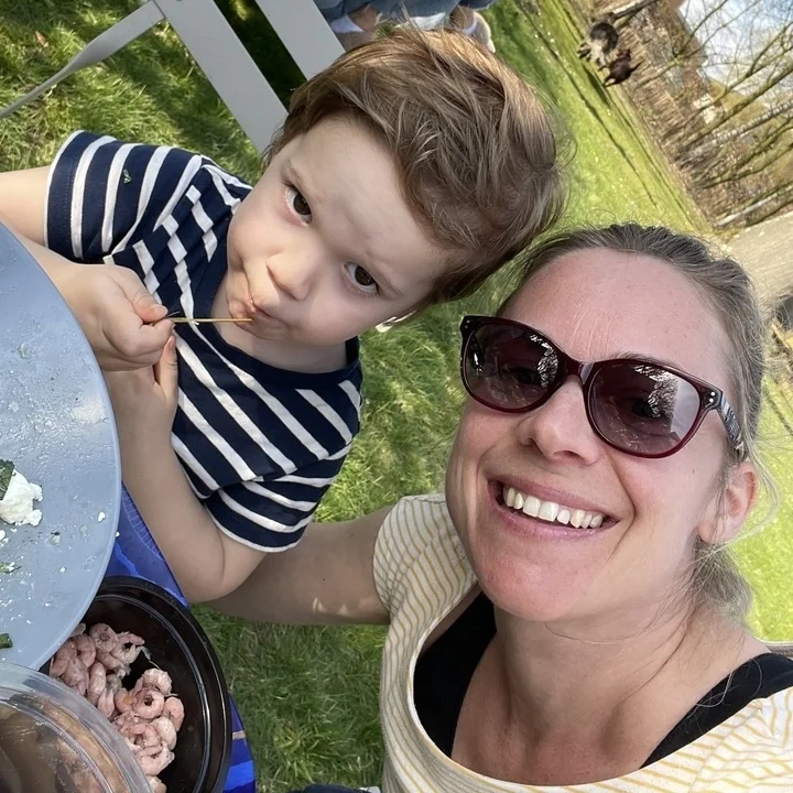 Ontbijt geven aan zoontje.